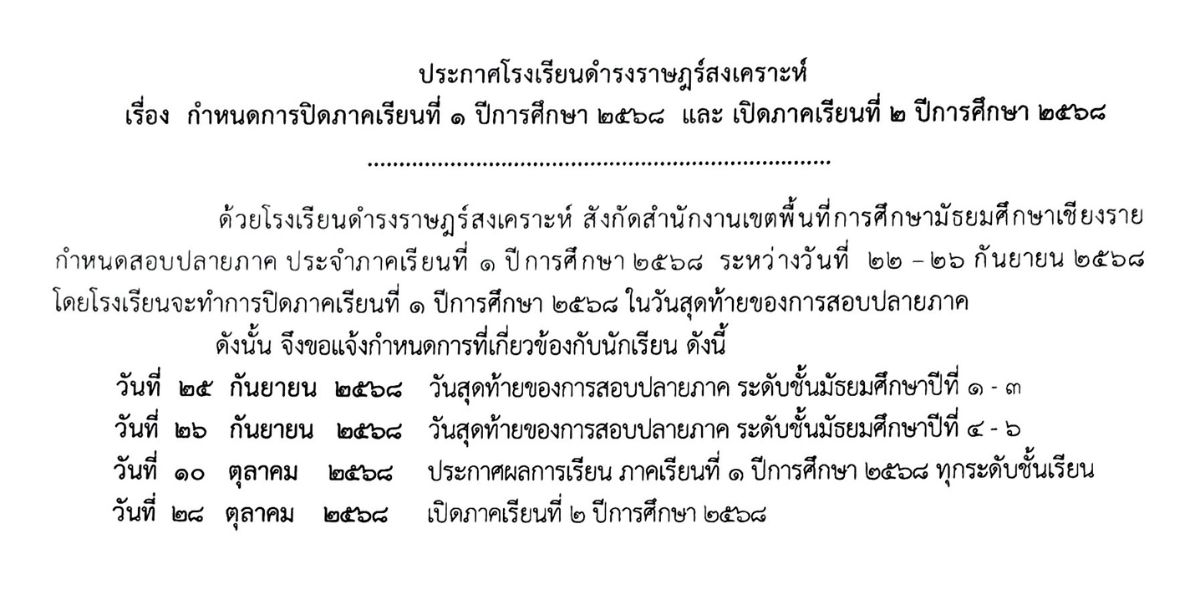ประกาศโรงเรียนดำรงราษฎร์สงเคราะห์