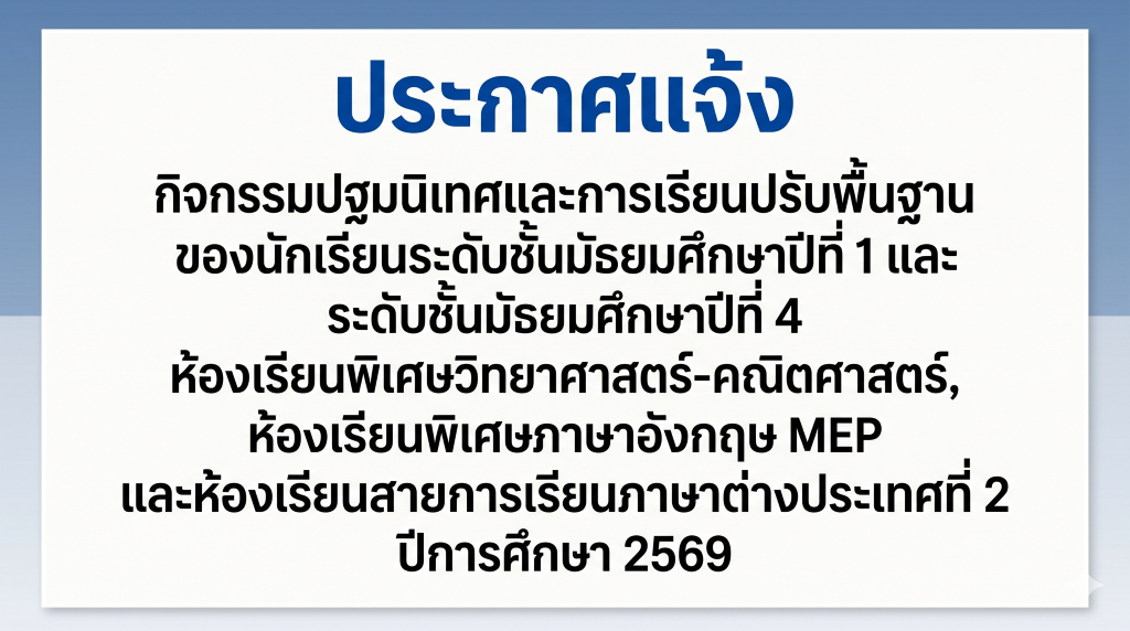 ประกาศโรงเรียนดำรงราษฎร์สงเคราะห์ จังหวัดเชียงรายเรื่อง ประกาศเลขประจำตัวนักเรียน และกิจกรรมในเครื่องแบบระดับชั้นมัธยมศึกษาปีที่ 1 ปีการศึกษา 2569